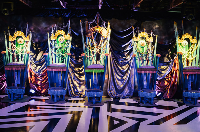 The ball, held in the Wax Museum on Conti St. in the storied French Quarter, was designed in the spirit of a Vogue Ball meeting a Bounce Shakedown meeting an unconventional New Orleans masked ball. A small army of local artists brought the magic in powerful and unforgettable ways. Honored guests arrived in chariots of wildly different styles created by iconic local and international artists. All guests were ushered in by the iconic and mystifying LiquidNailz and entertained and enlightened during their journey through the Wax Museum’s somewhat jarring dioramas by The New Orleans Society for Tableau Vivant. A human sized swinging chandelier met guests at the top of the stairs where decorations by Margot Walsh, Ellery Neon and Andrew Schrock transformed the space into a ballroom worthy of such a unique convergence. This is only a handful of the talented people it took to make this happen, please see our additional links for a detailed list of participants and creators, and more amazing images.
