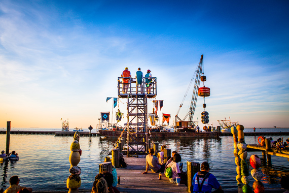 Participants included fisherman who performed a shrimp boat ballet, a range of coastal advocacy organizations who brought the facts and the messages to audiences from within an installation of fishing nets created by local architects, neighborhood fish fryers who depend on the coastal catch, and a variety of speakers including