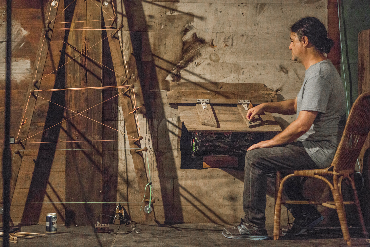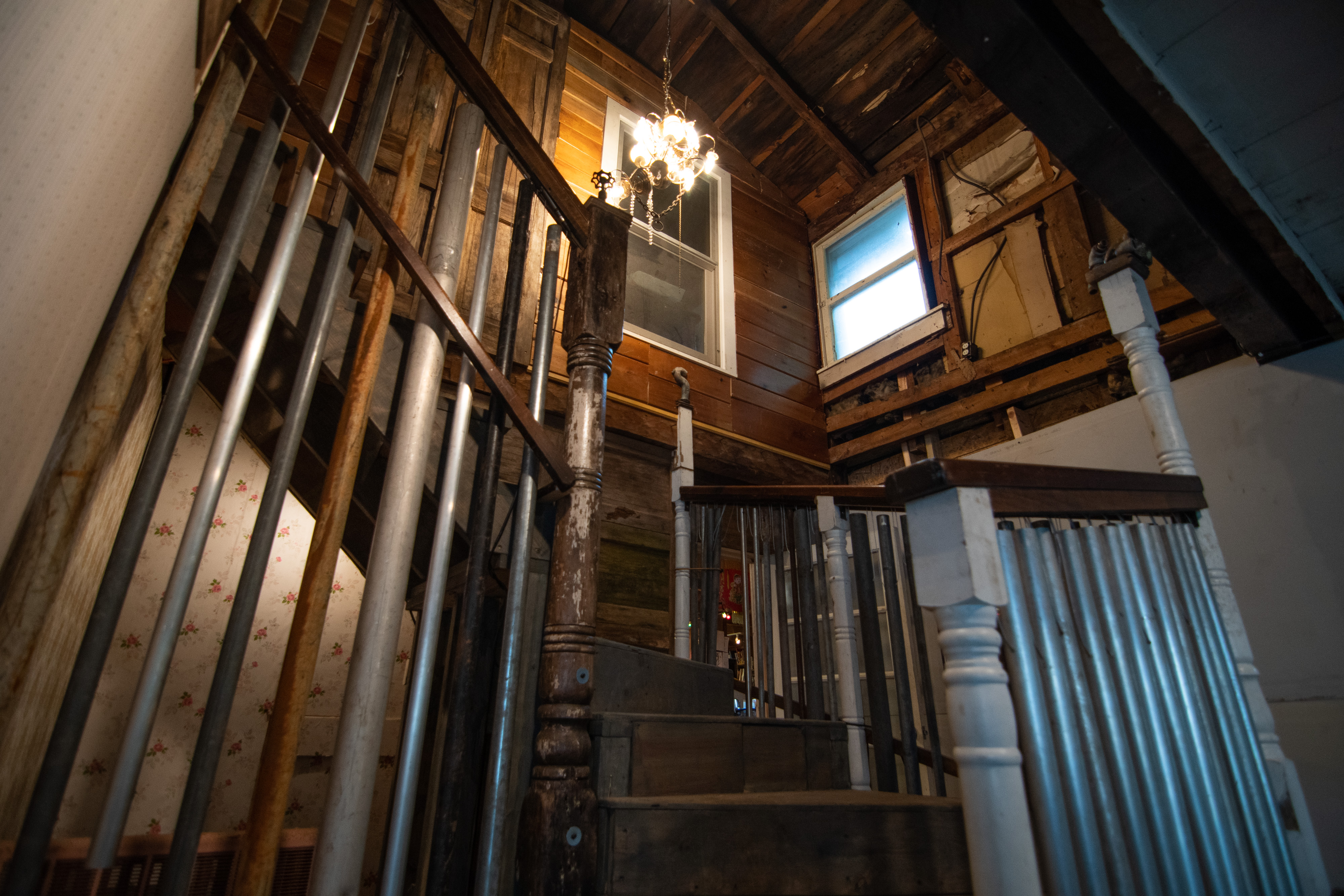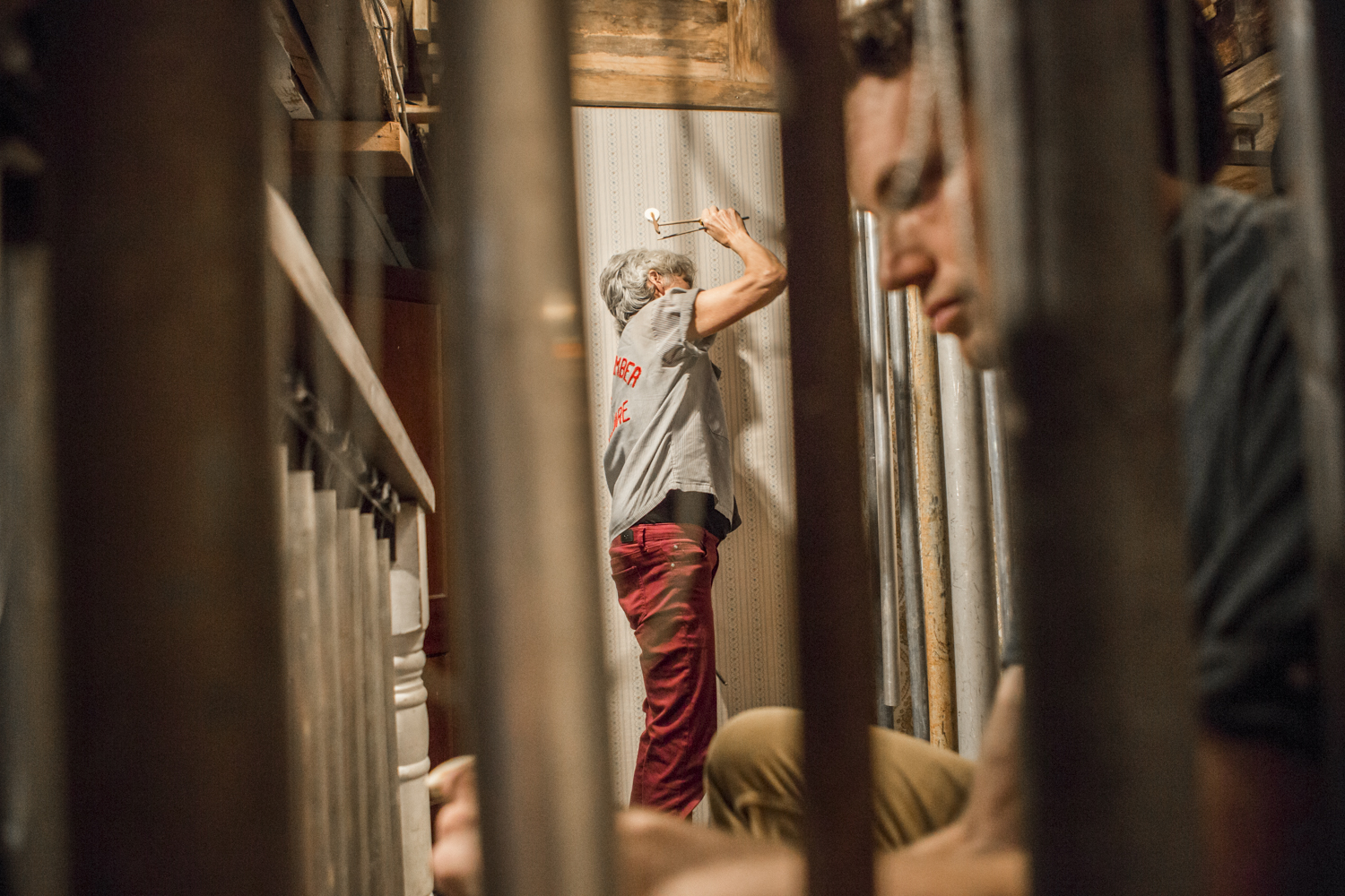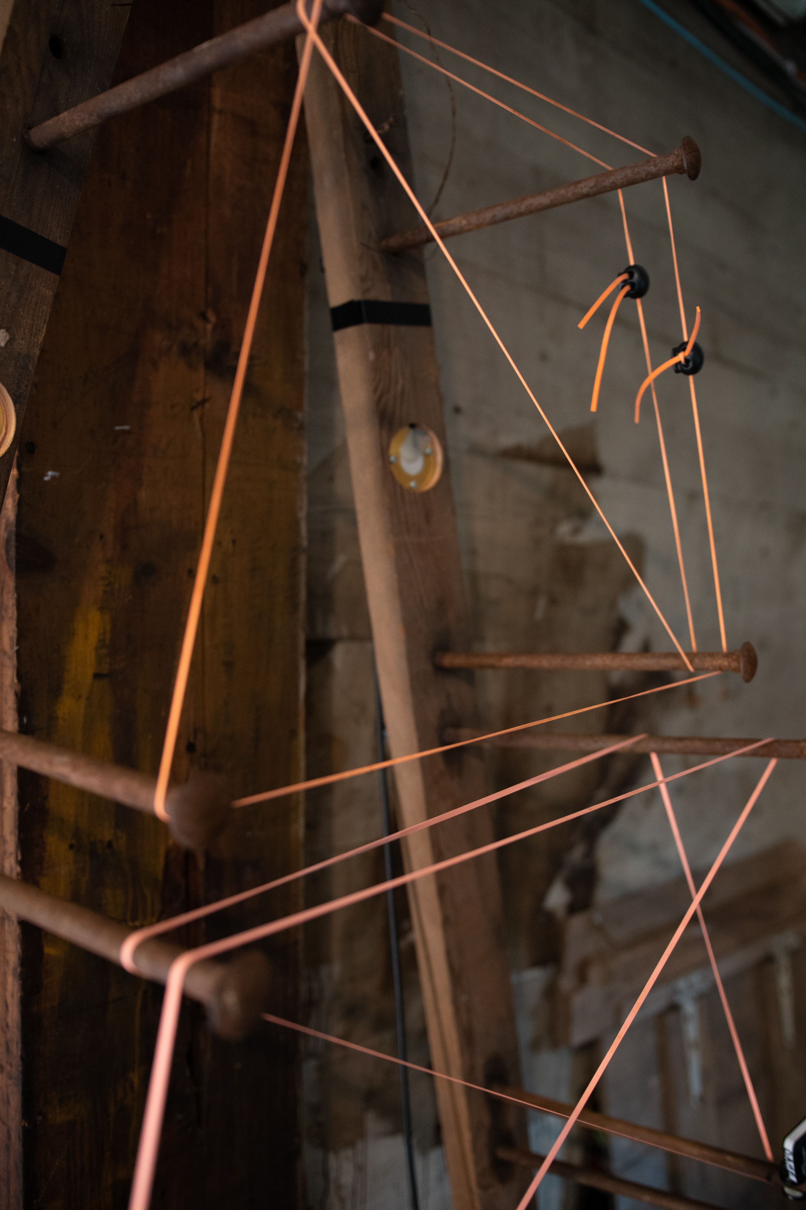 Taylor Shepherd and Delaney Martin led their first Music Box Outpost that saw musical architecture built into a real house. The Prattsville Art Center and Residency is a vital hub in a small Catskills, NY working class village. With regular art shows, visiting musicians, a coffee shop and a community library the center is a creative outlet for locals and visitors of all ages. Musical architecture is now dispersed throughout this well used and funky former hardware shop dating from the 1800’s. A door bell by Martin and Shepherd functions as a call and response to the local fire departments sirens that run tests at noon daily. Open the door to the sound of Terry Dame’s tinkling keys instrument triggered by the door. In the library Nic Yulman has installed a shelf of playable books. In the performance room Martin and Shepherd have customized a staircase to have a chime balustrade and steps that trigger beats. Dame and Yulman have instruments to be played on the walls and the ceiling while Ranjit Bhatnagar built an accordion into the wall. Bhatnagar also provided the center with his very popular musical brooms! The group of artists unveiled the permanent installation with a performance and it continues to be used by visiting musicians who incorporate elements of the work into their sets. Airlift has encouraged the center to commission more experiments to grow its musical architecture over time. As always it was a joy to be in community with the folks we met in Prattsville.