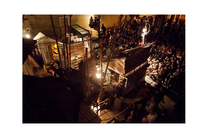 The Music Box: A Shantytown Sound Laboratory (2011-12) on Piety St. in New Orleans was our first installation of musical architecture, acting as a testing ground and proof-of-concept for our vision of what musical architecture could be. The installation was built from the salvaged remains of a 250 year-old house on the site where it had stood. Invented instruments were embedded into walls, ceilings, and floors of nine small structures that supported boundary-breaking musical performances and inspired wonder, exploration and invention in visitors of all ages.